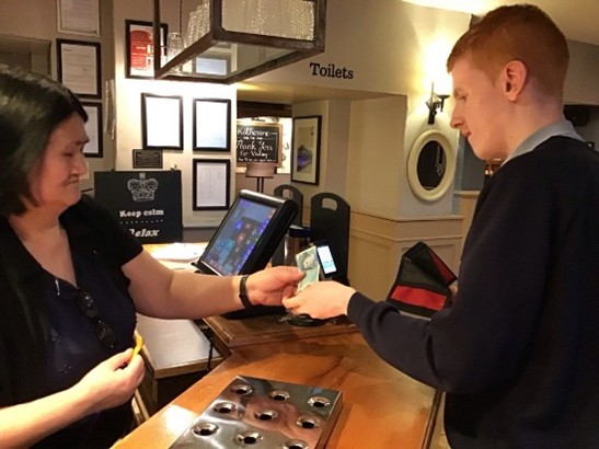 As part of the project, some pupils from Upper School visited the Battle Axes Pub to deliver the collected tubs for recycling. During this visit, pupils also had the opportunity to practise valuable life skills. They worked on their social interaction and money-handling skills by confidently ordering a drink in a real-life community setting.